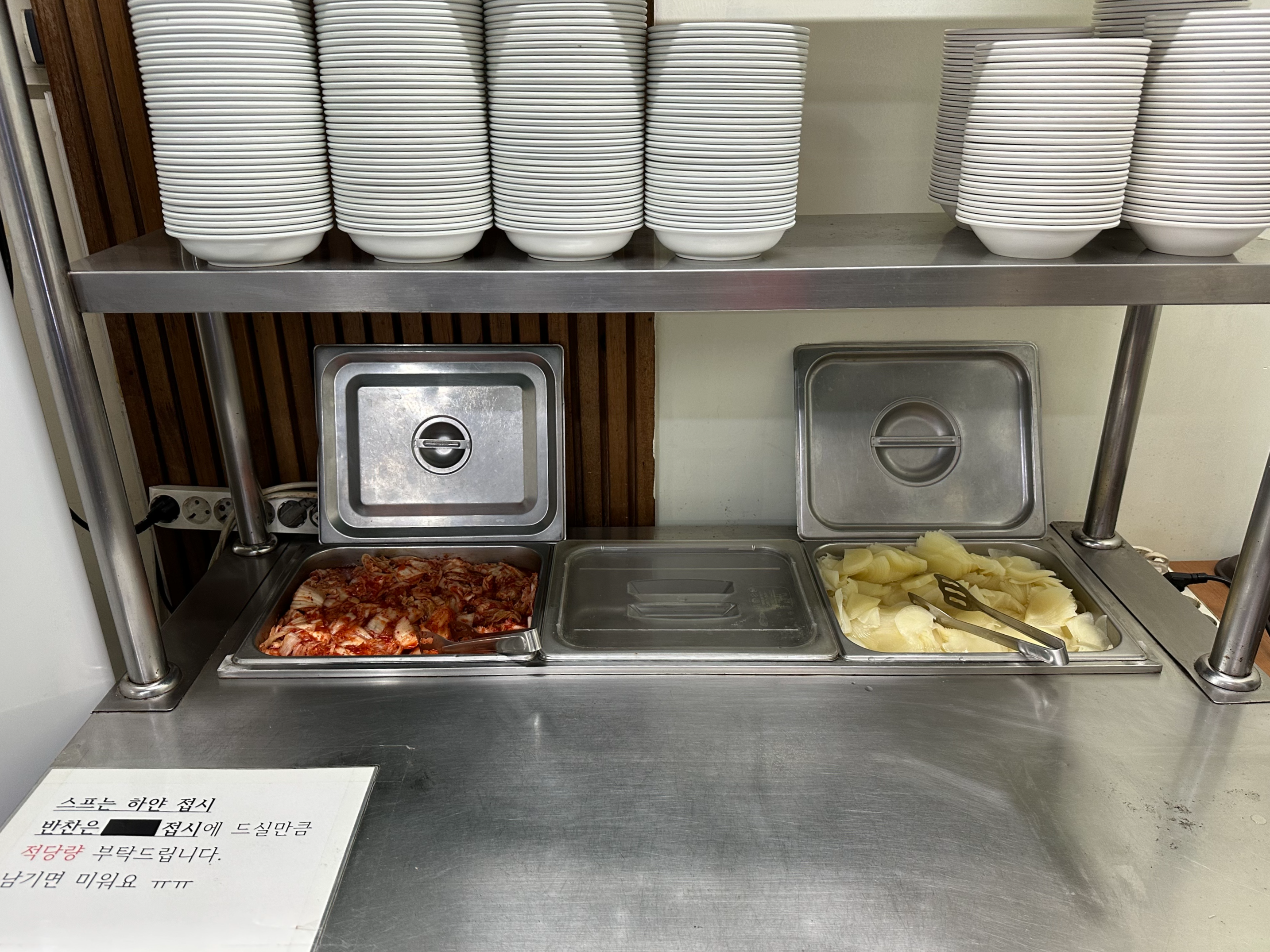 셀프 반찬코너 옆에 수프코너도 마련되어 있다.