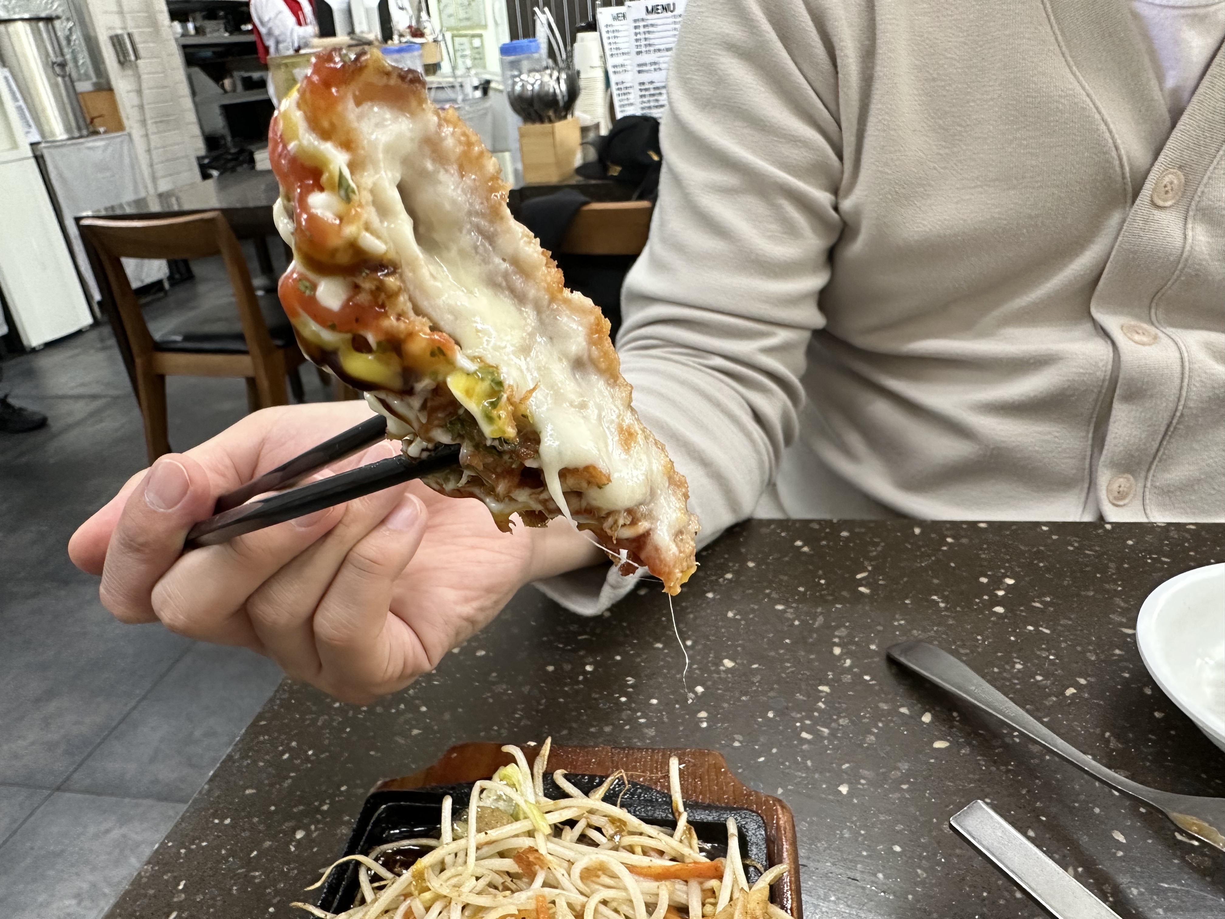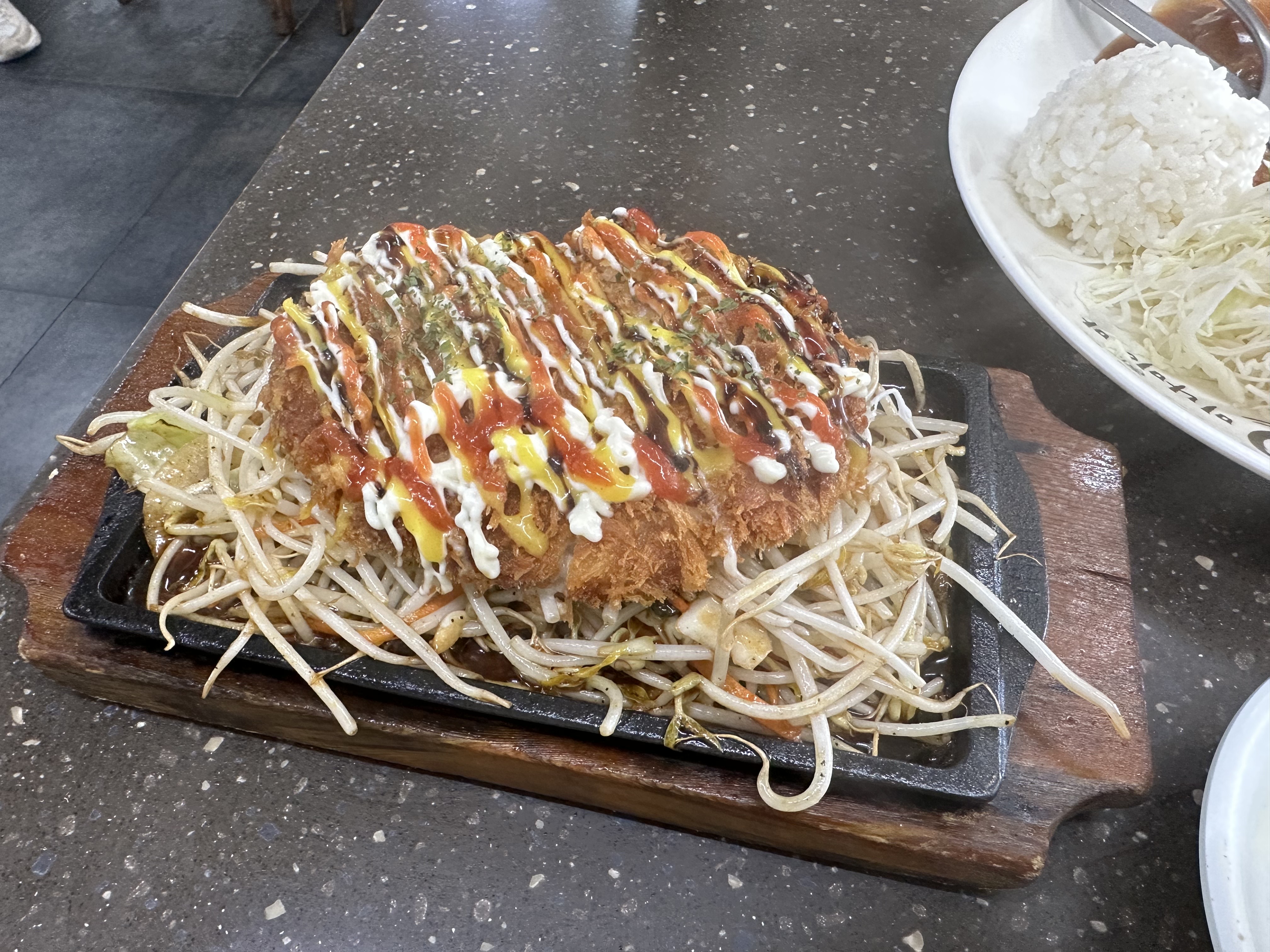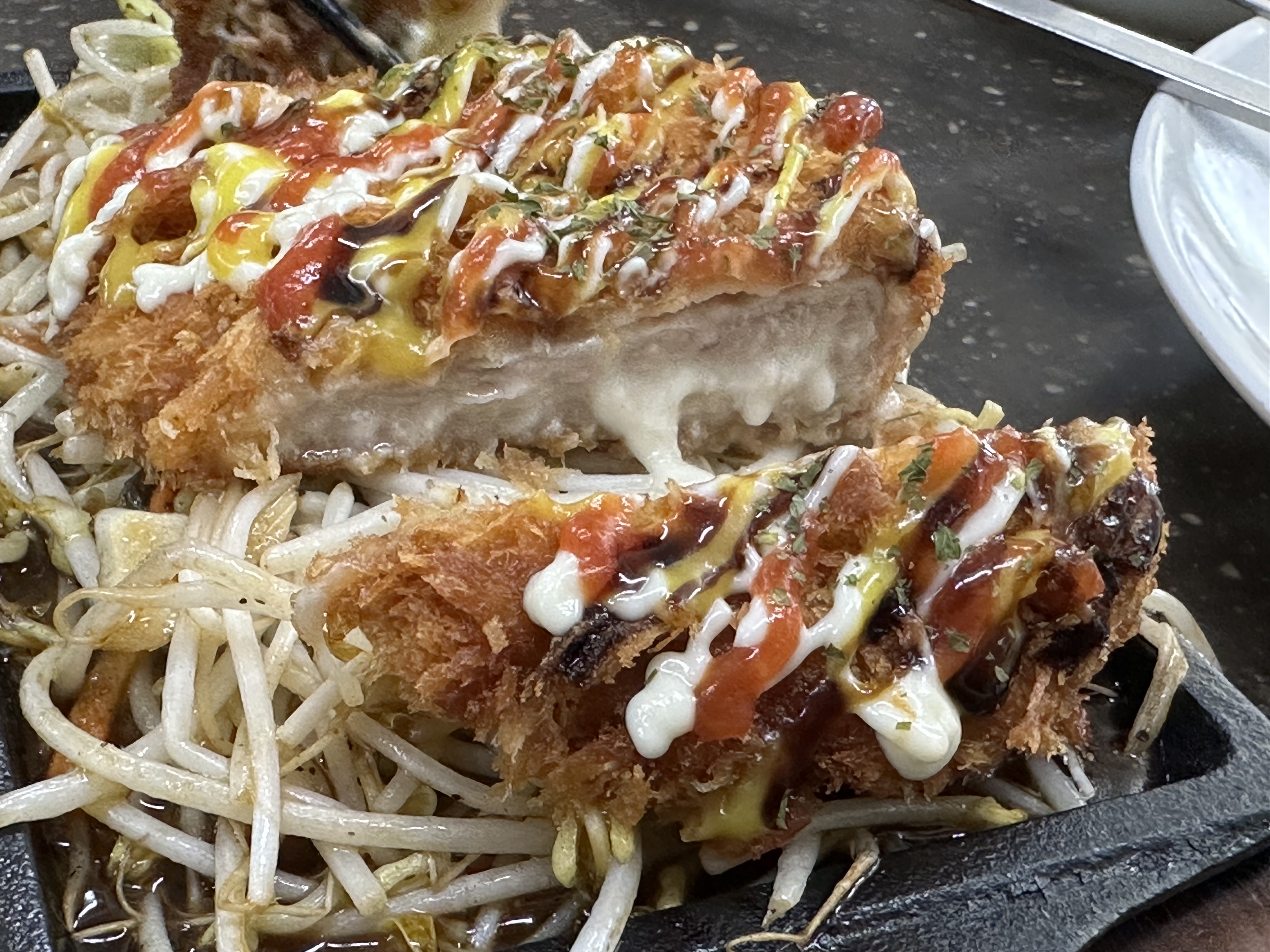 그리고, 한정메뉴라는 글귀에 혹해서 주문했던 철판치즈돈가스가 나왔다.