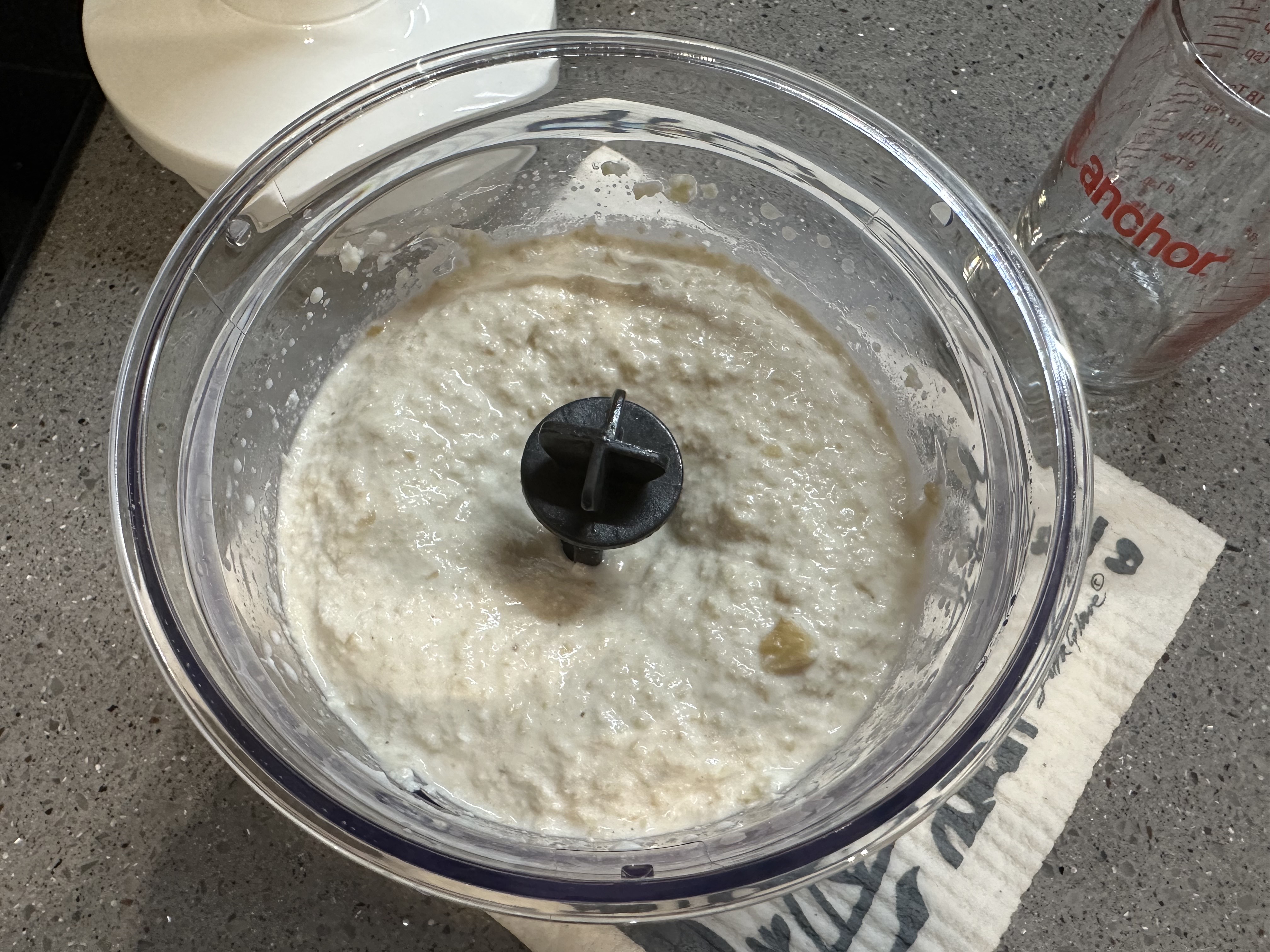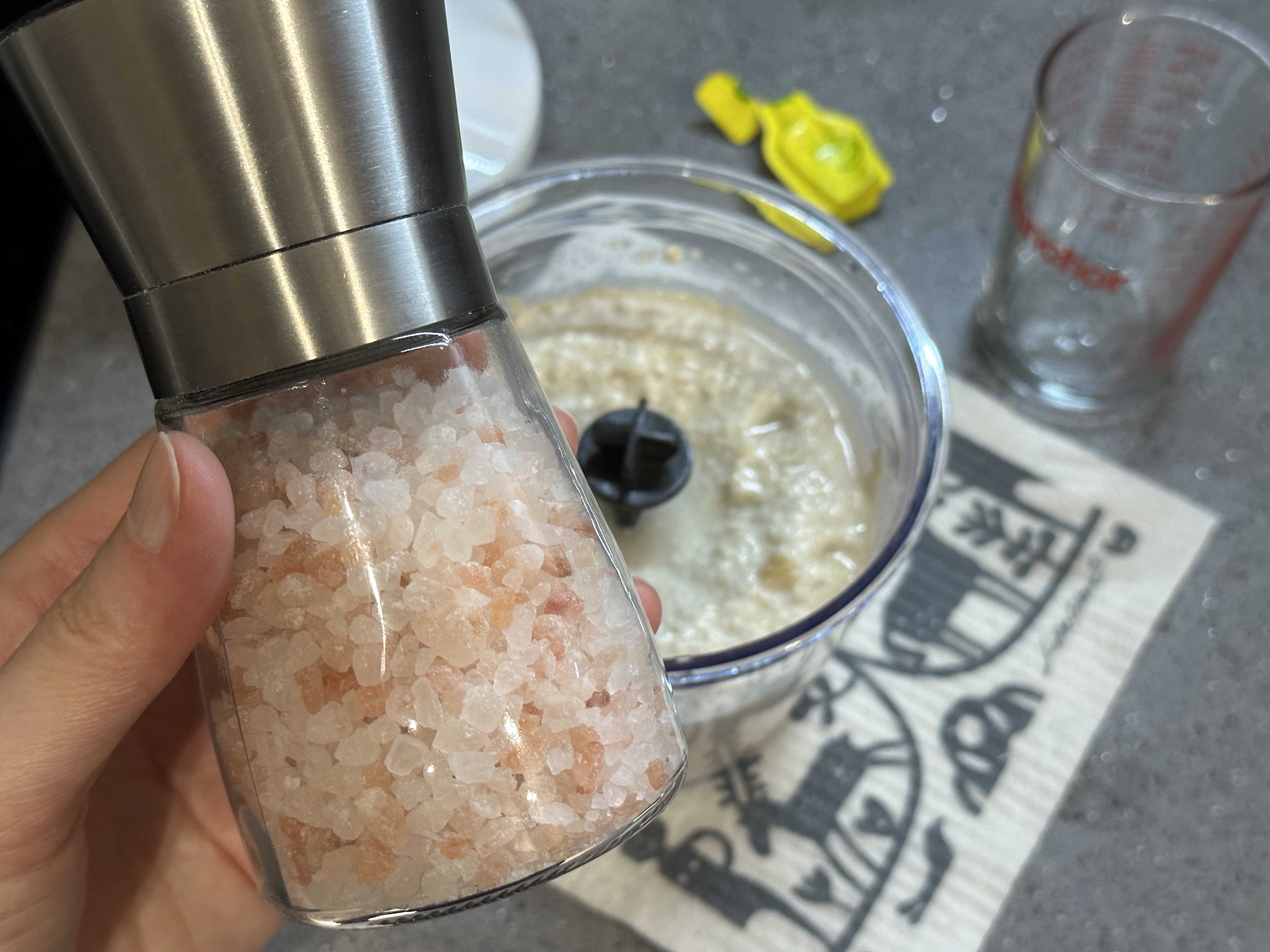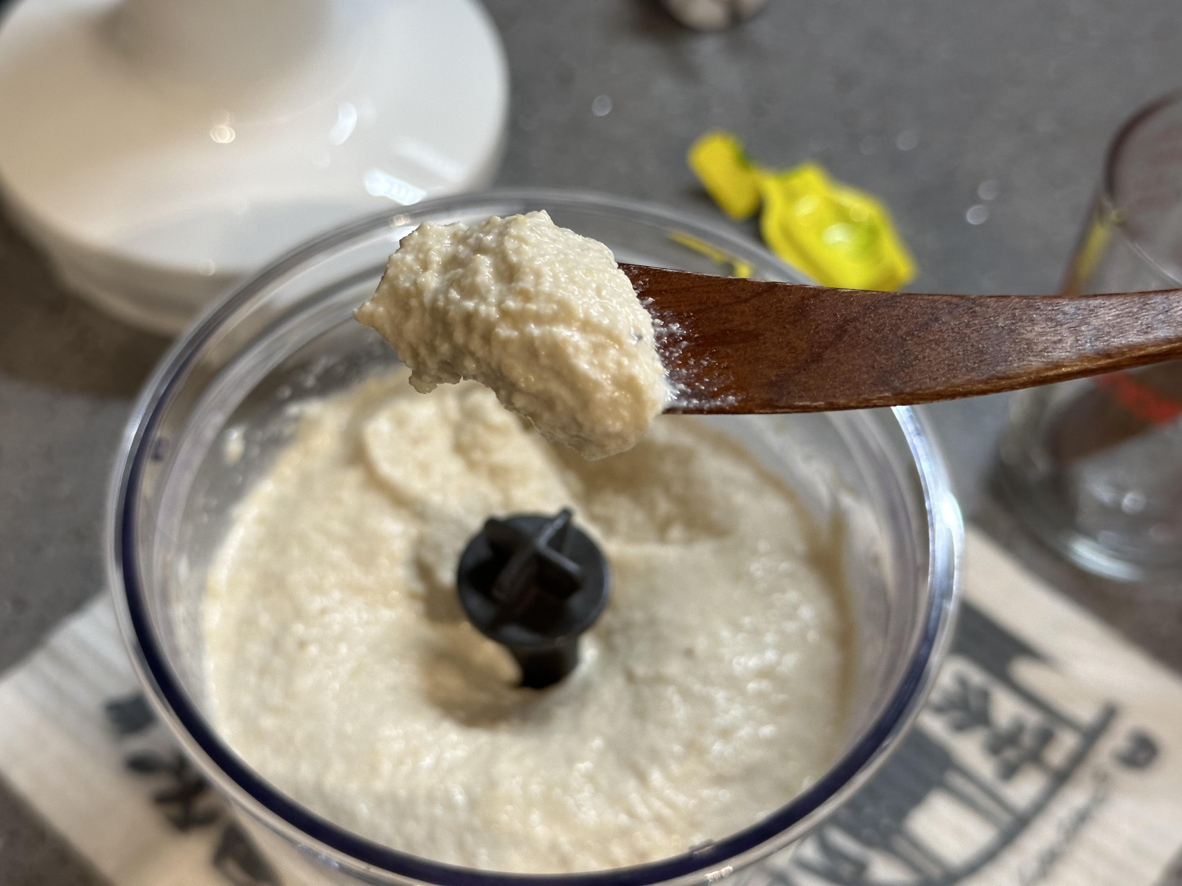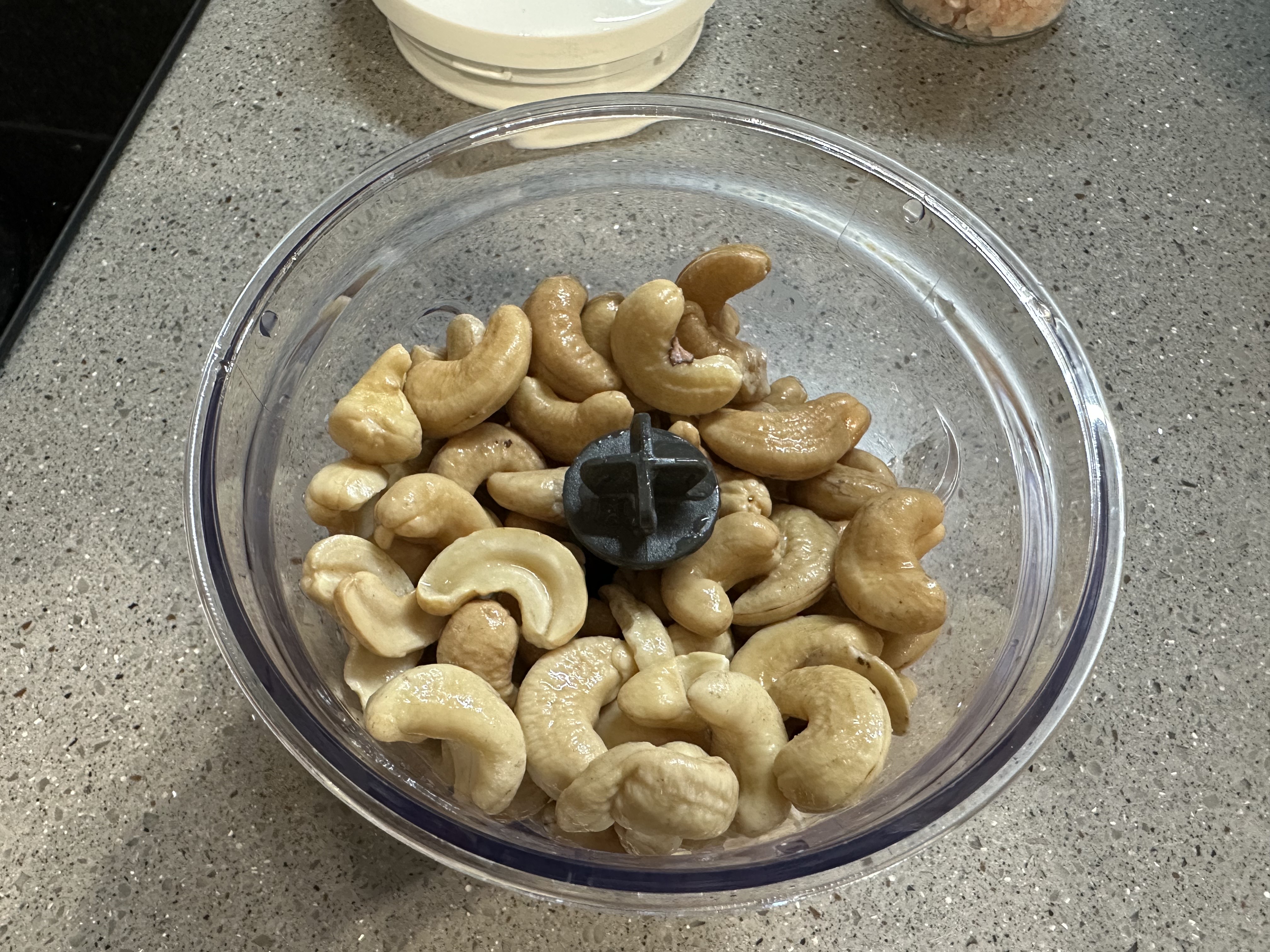 모든 재료를 넣고 신나게 한번 더 갈아주었더니 캐슈넛이 꽤나 곱게 갈렸다.