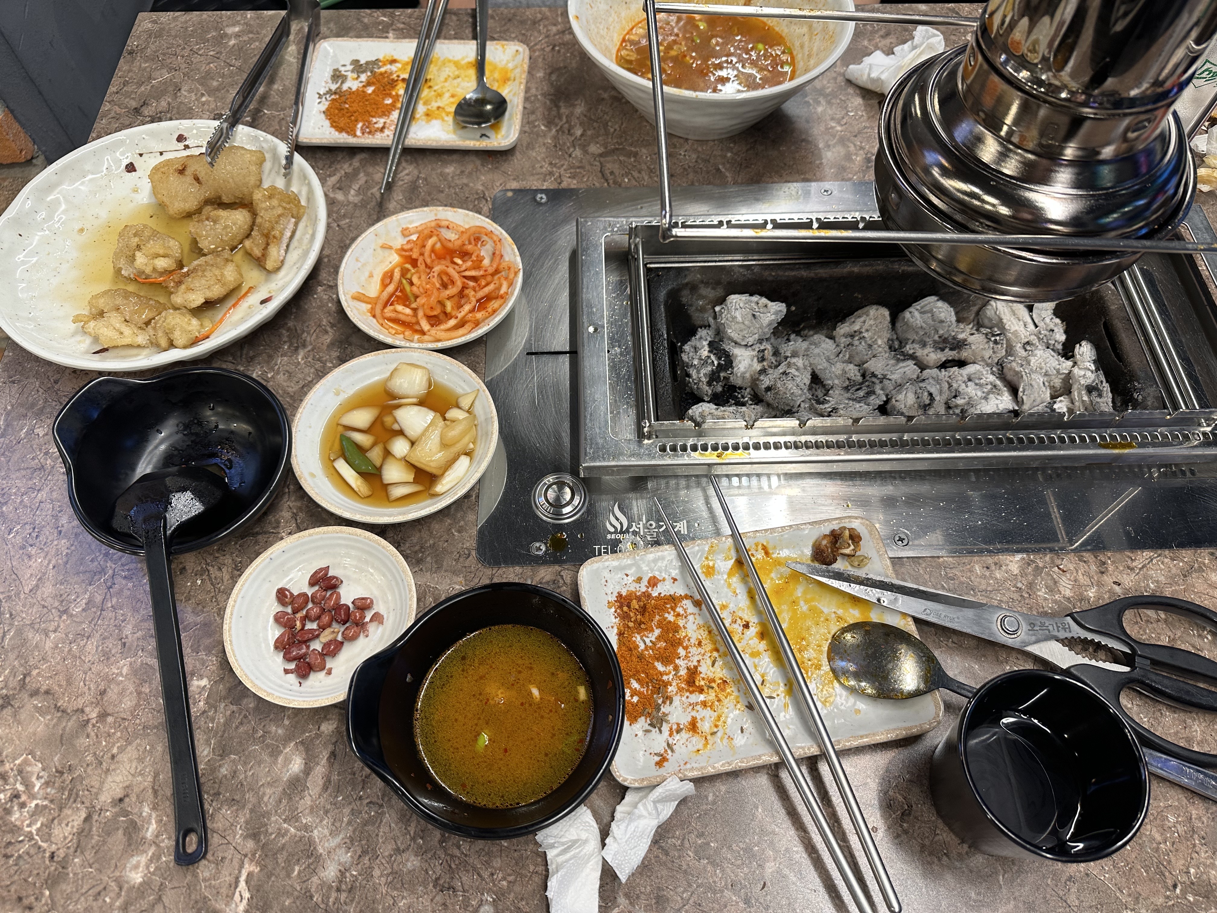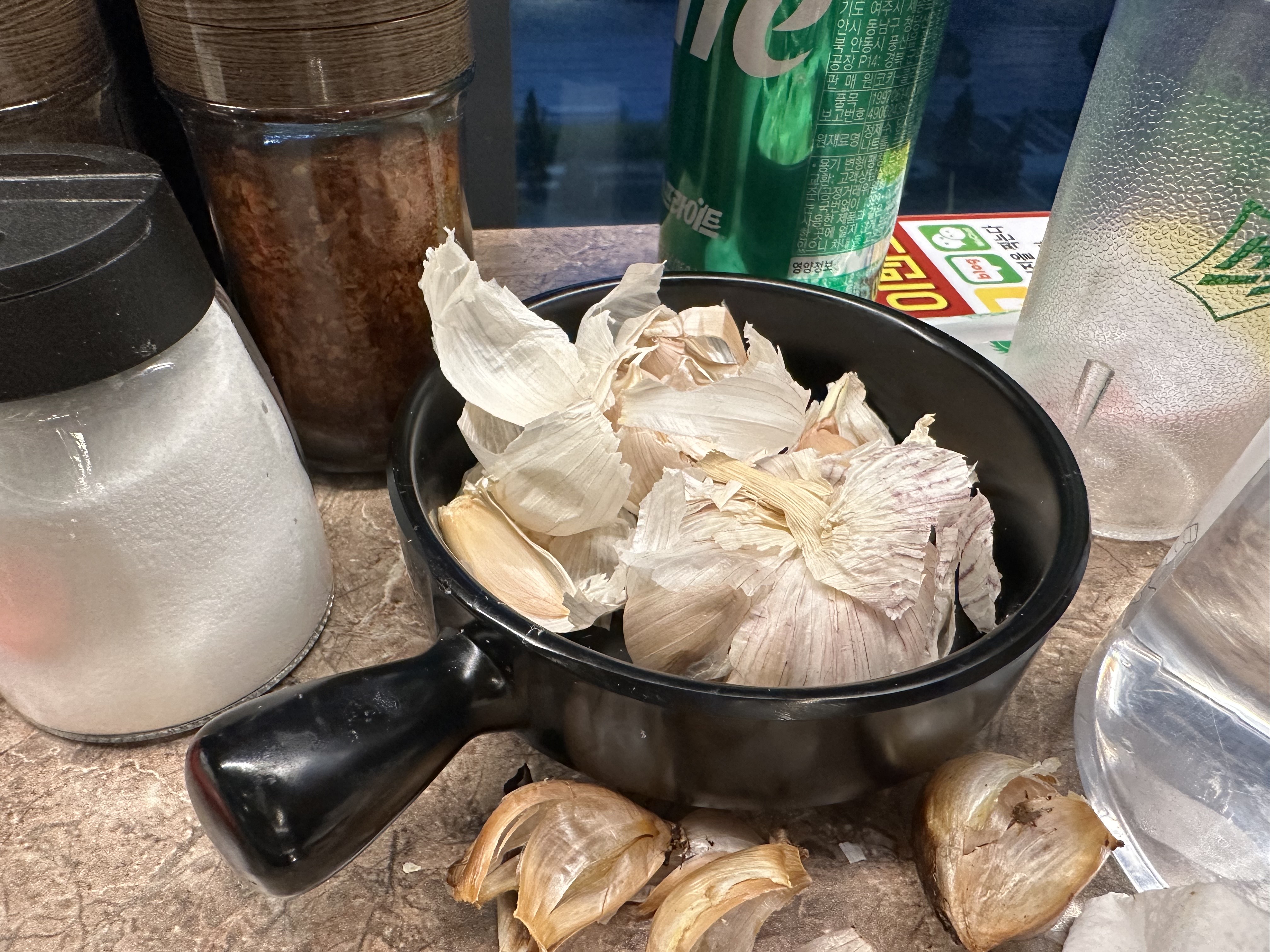 처음에 갔을 때는 뭔지 잘 몰랐었는데, 테이블마다 마늘이 통째로 준비되어 있다.