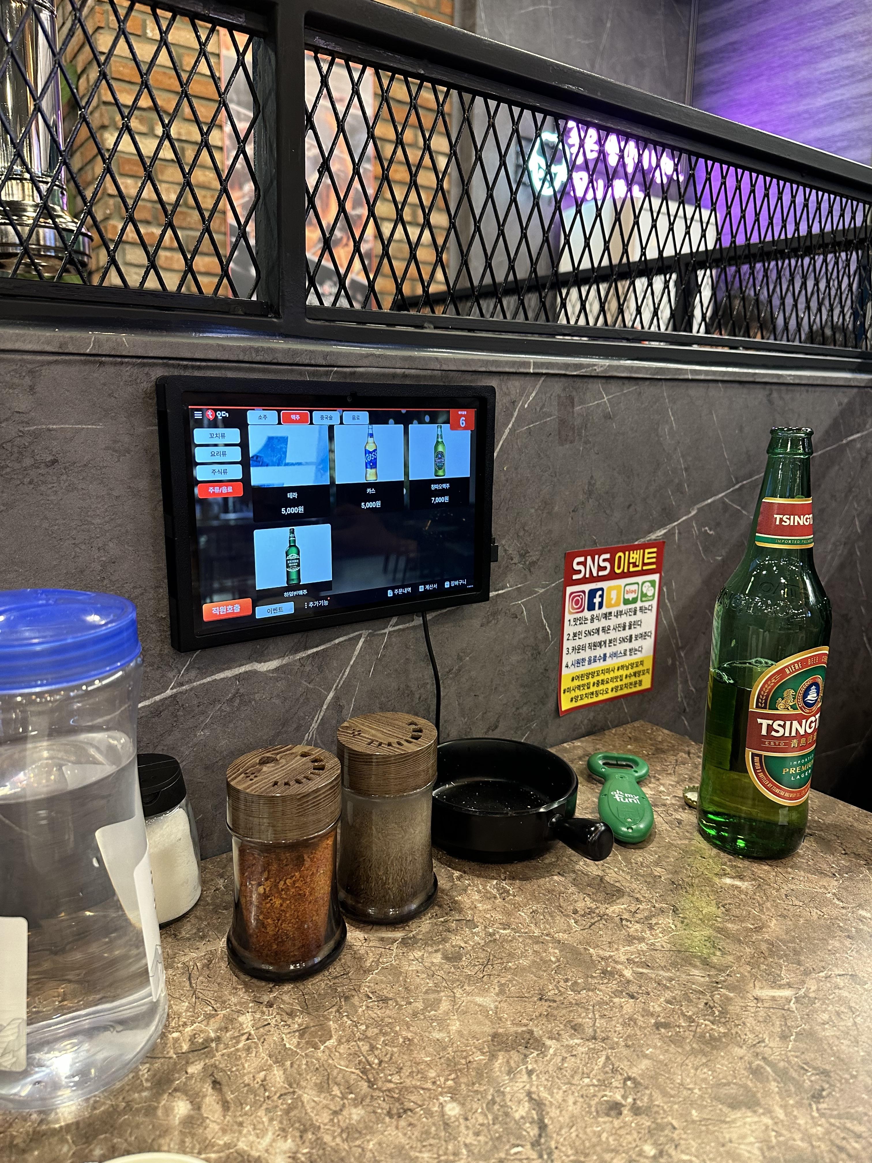 좌석마다 태블릿이 준비되어 있어서 주문을 하기도 편리하다.