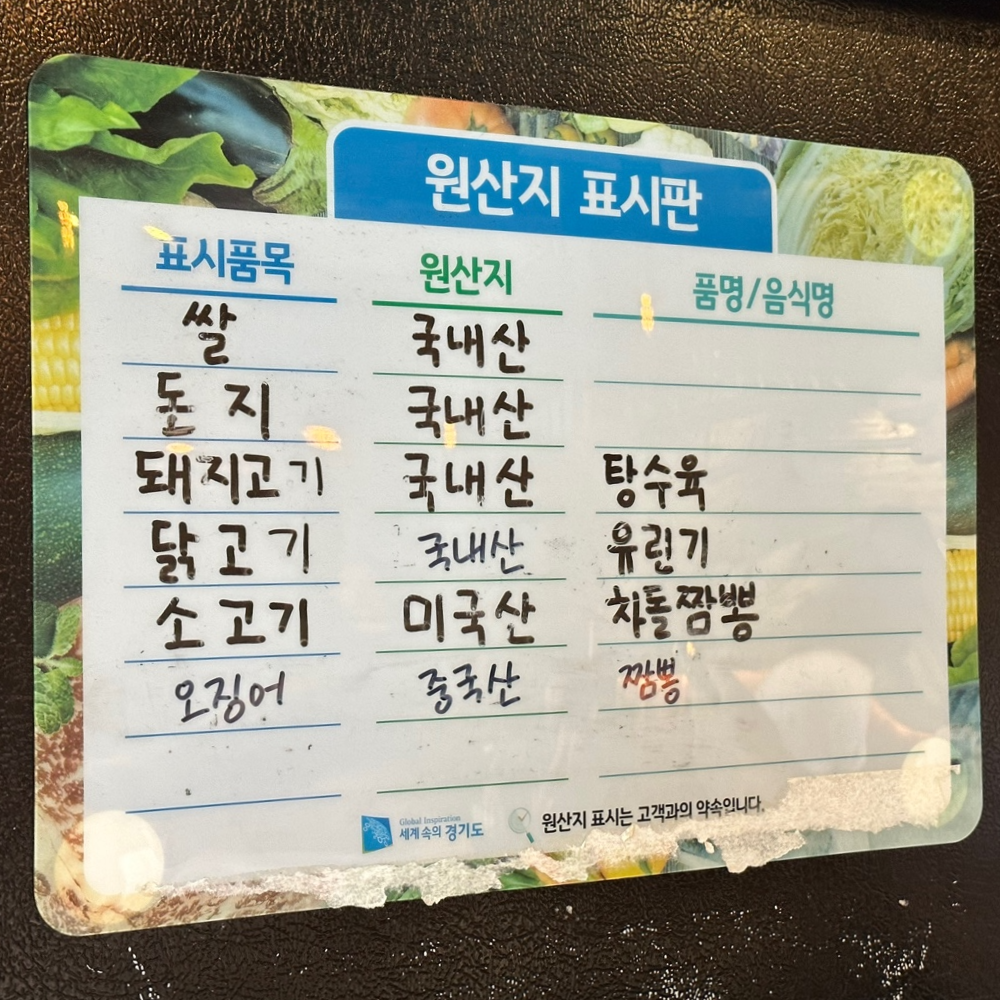 식당 안쪽에 원산지 표시판도 붙어있었다.
