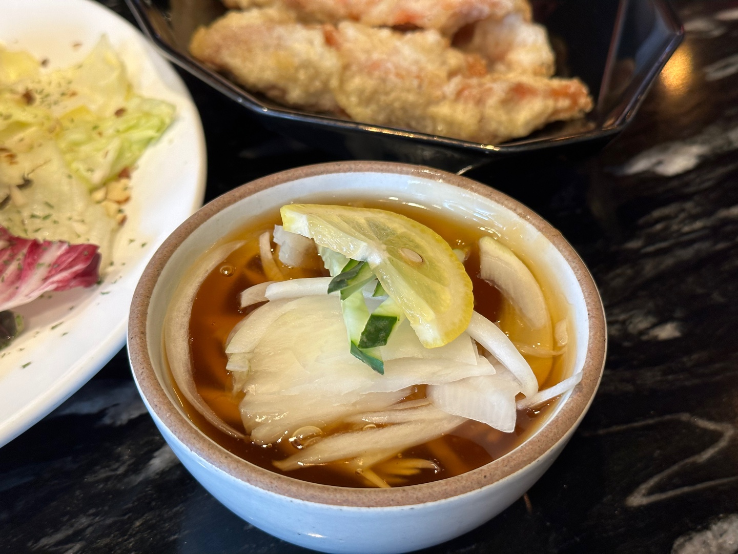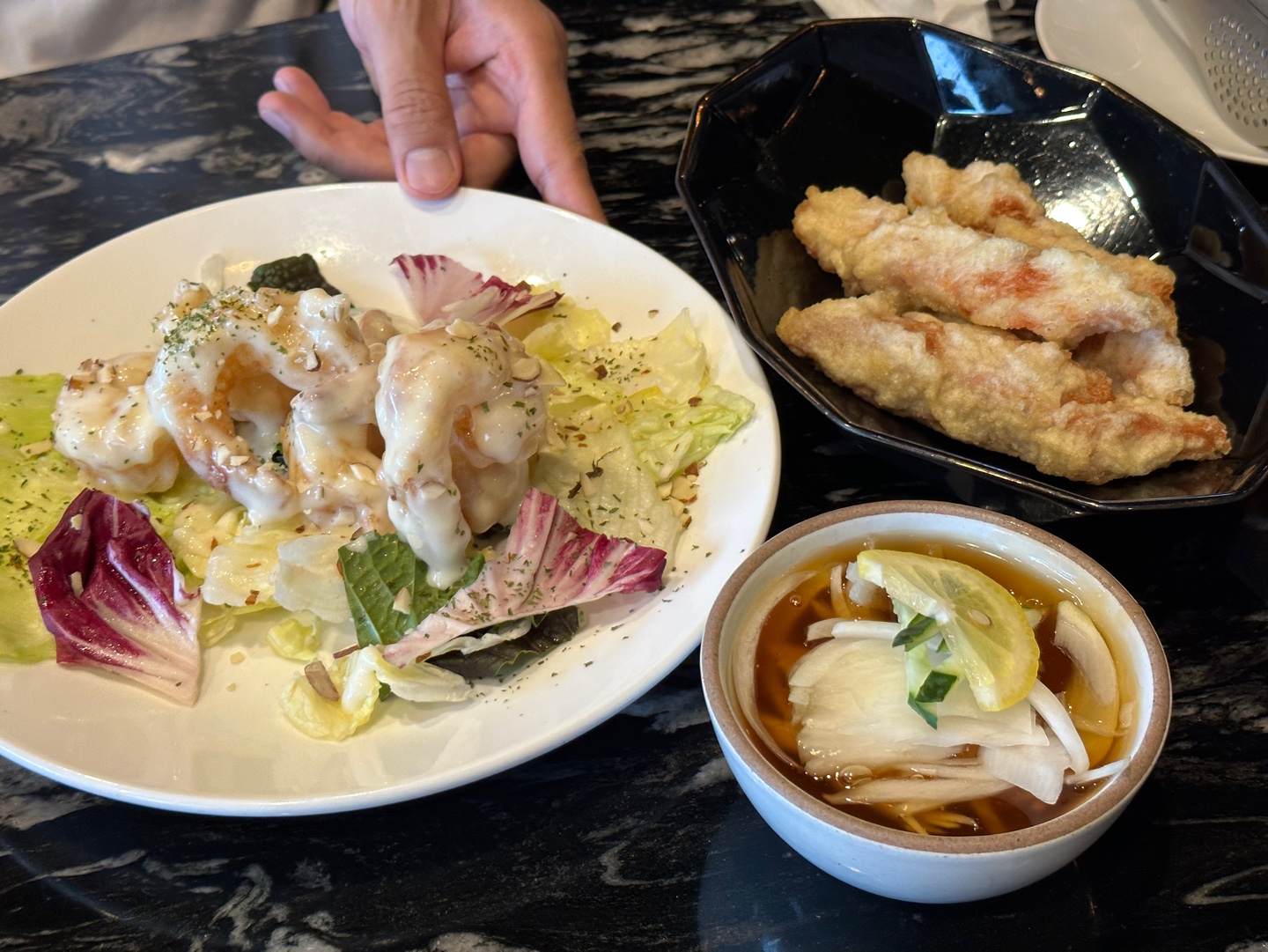 상큼한 레몬 마요네즈 소스가 새우튀김과 생각보다 잘 어울렸다.
