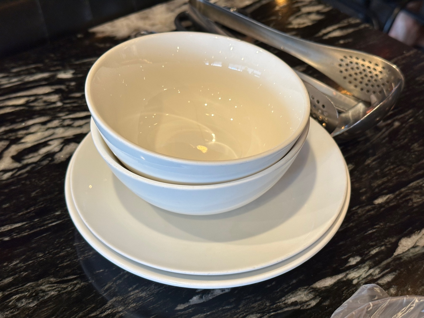 보울 2개와 앞접시 2개, 집게와 국자, 가위도 준비해 주셨다.
