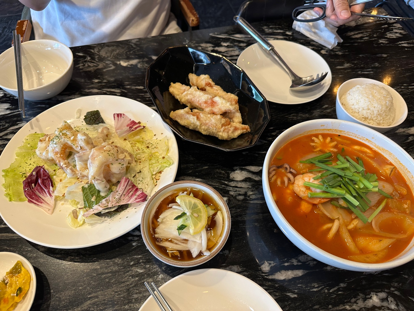 앞에 대기가 몇 팀이 있었고, 점심식사는 우리가 마지막 손님이었다.