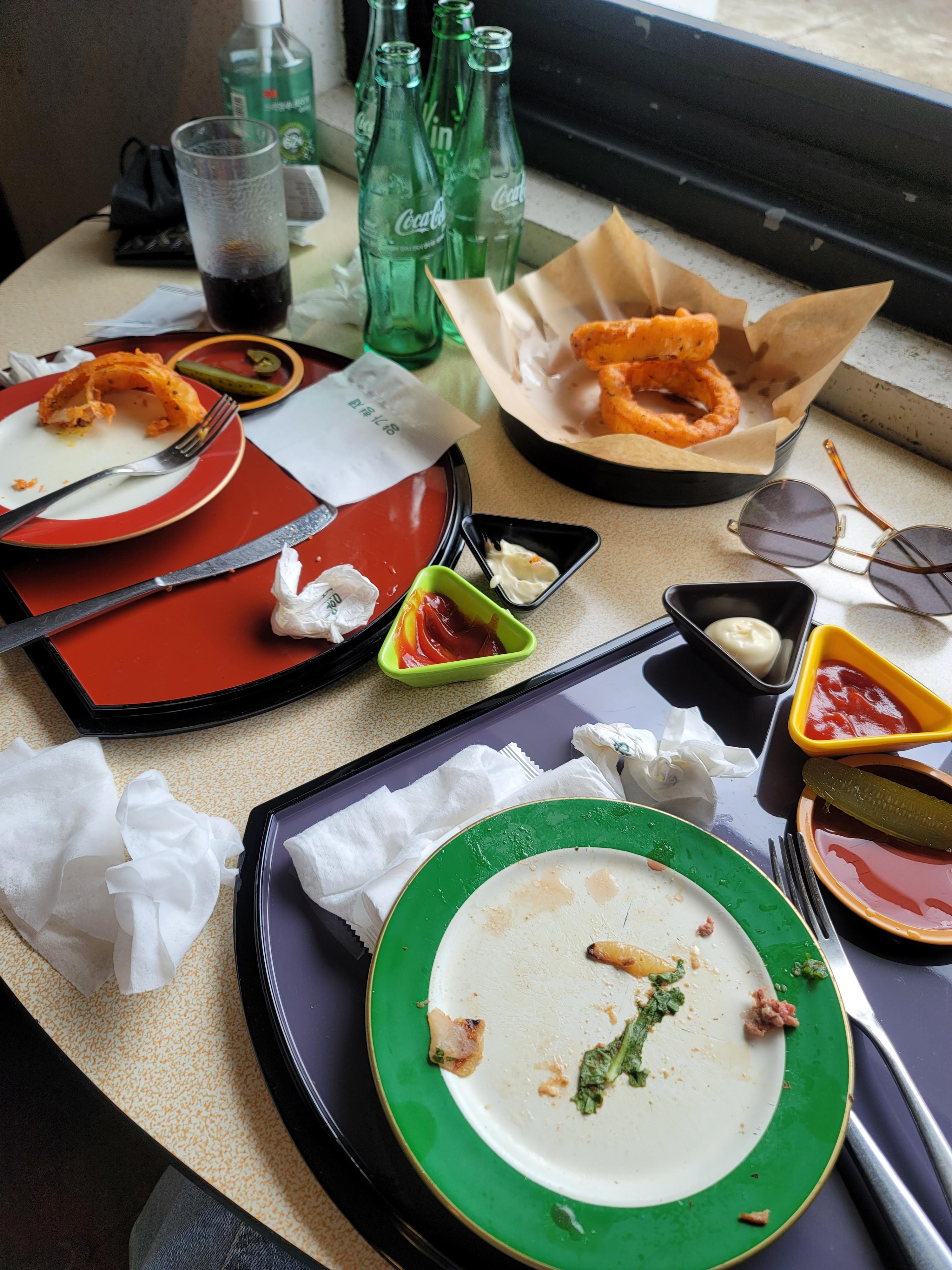 원색적인 접시들과 선명한 색감의 버거, 음료수 병들을 한 눈에 담으니 마치 팝아트의 작품이 생각났다.